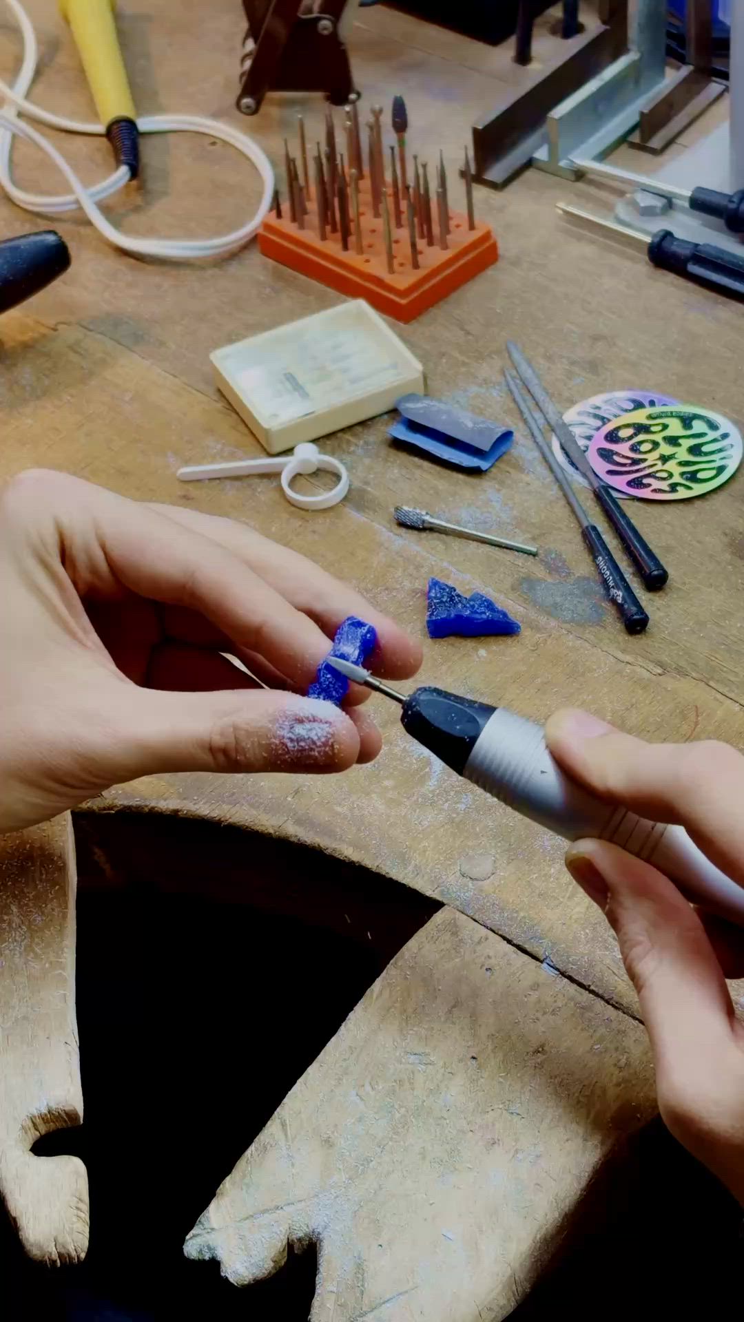 Der 4-stündige Workshop ist für Anfänger*innen und Fortgeschrittene geeignet. Mit professionellen Werkzeugen kannst du schmelzen, feilen, formen und modellieren. In kleiner Runde entsteht eine entspannte, kreative Atmosphäre.